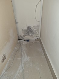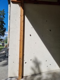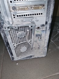 Figure 1: a) Destroyed TPS workstation, b) Inner wall that was hit by missile fragment, c) Outer wall that was hit by multiple missile’s fragments.