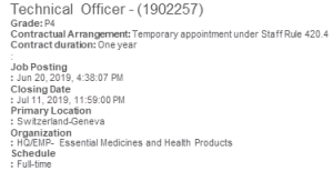 To continue this work , WHO will be hiring and will soon be posting a 9 month position (1903201) :
